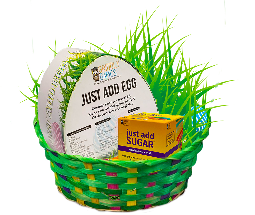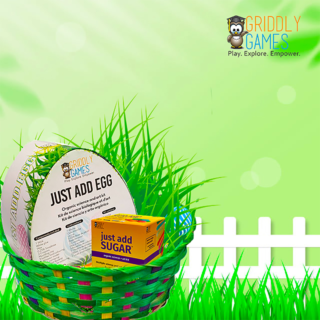 Griddly Games today announced that its egg-ceptional science + art activity kits, Just Add Egg and Just Add Sugar, fit into any Easter basket without the calories.