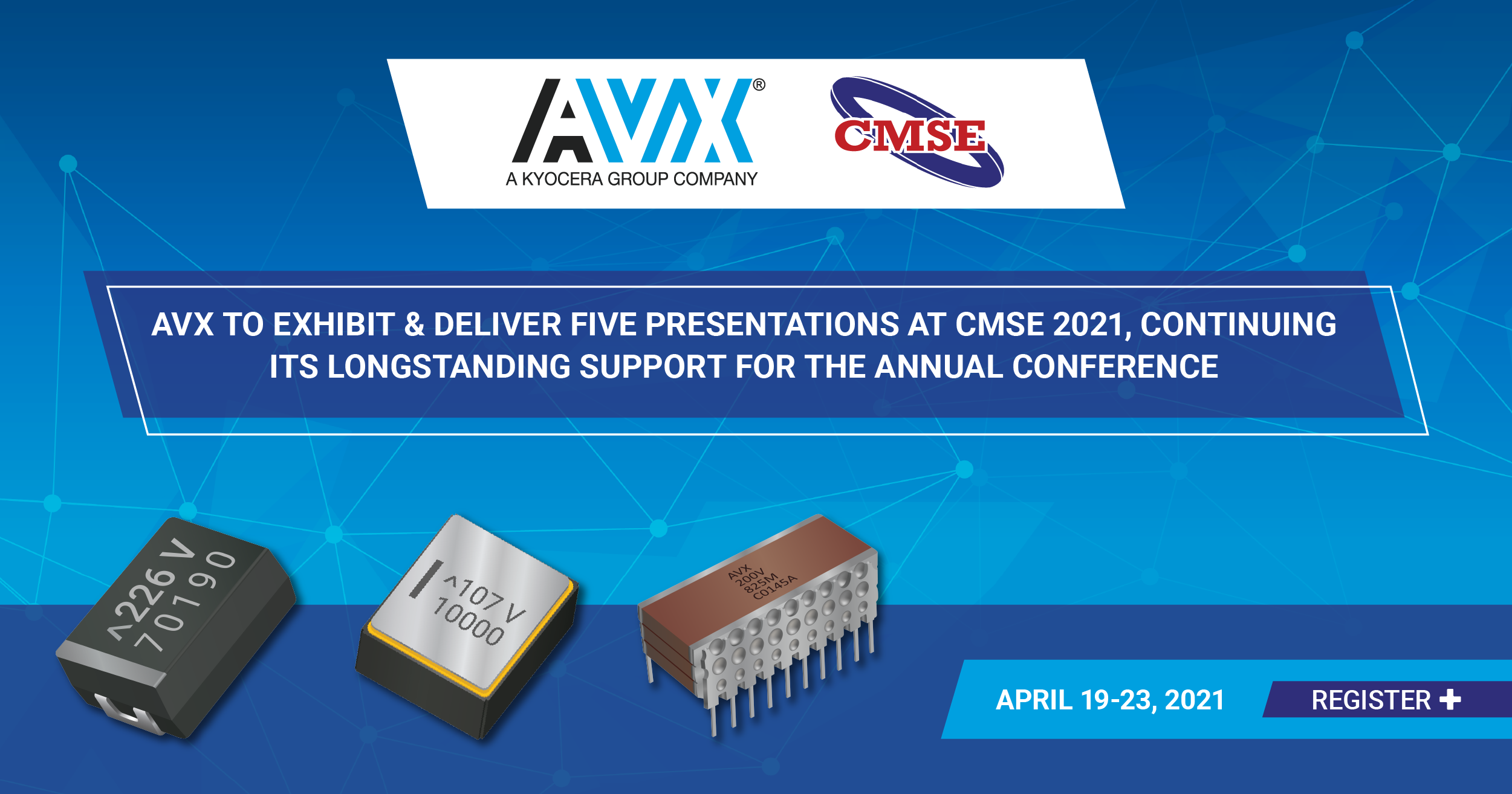 “CMSE is the leading technical conference for engineers primarily focused on reliability and technological advances in the passive component industry,” said CMSE Program Chair Tom Green. “These advanced products are critical enablers of various applications, ranging from the myriad capacitors employed in modern-day hybrid electric vehicles to the RF microwave modules designed into military and space systems and leveraged for national security. AVX’s continued presence at CMSE is a true testament to the company’s dedication to the design and development of advanced military and space applications, and in spite of the challenges posed by the global coronavirus pandemic, we are grateful to have the AVX team share its knowledge and expertise with our registered conference attendees for the eighth consecutive year.”