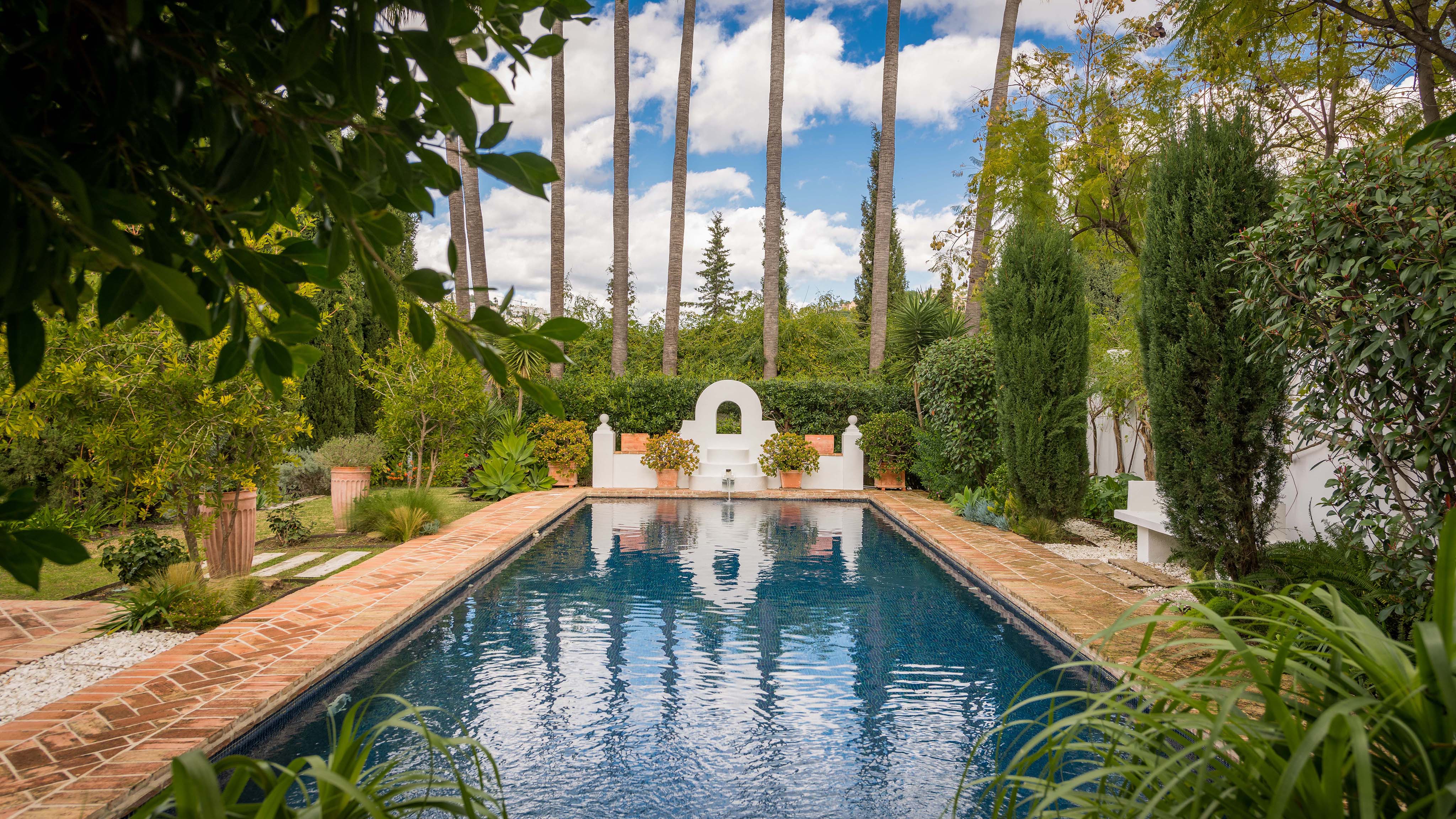 Classic French-inspired style meets modern luxury in this elegant estate. Casa Neblina enjoys the best of the Costa del Sol in addition to unparalleled privacy. A manicured courtyard, complete with water fountains and plentiful fruit trees, brings you to the ornate antique double entrance doors. Beyond them is a spectacular double-height grand foyer with a sweeping staircase that leads to the upper gallery and the bedroom suites beyond. Additional features include antique double entrance doors; a master suite featuring vaulted ceilings and a breathtaking Italian marble bathroom; a country-style kitchen with central cooking island; a formal dining room with French doors leading to the expansive terrace; a cobblestone secret garden and manicured courtyard with water fountains and fruit trees; a blue-tiled swimming pool; and a guest apartment with living area, kitchen and bedroom suite—all just minutes from Country Club La Zagaleta and in close proximity to 12 golf courses.