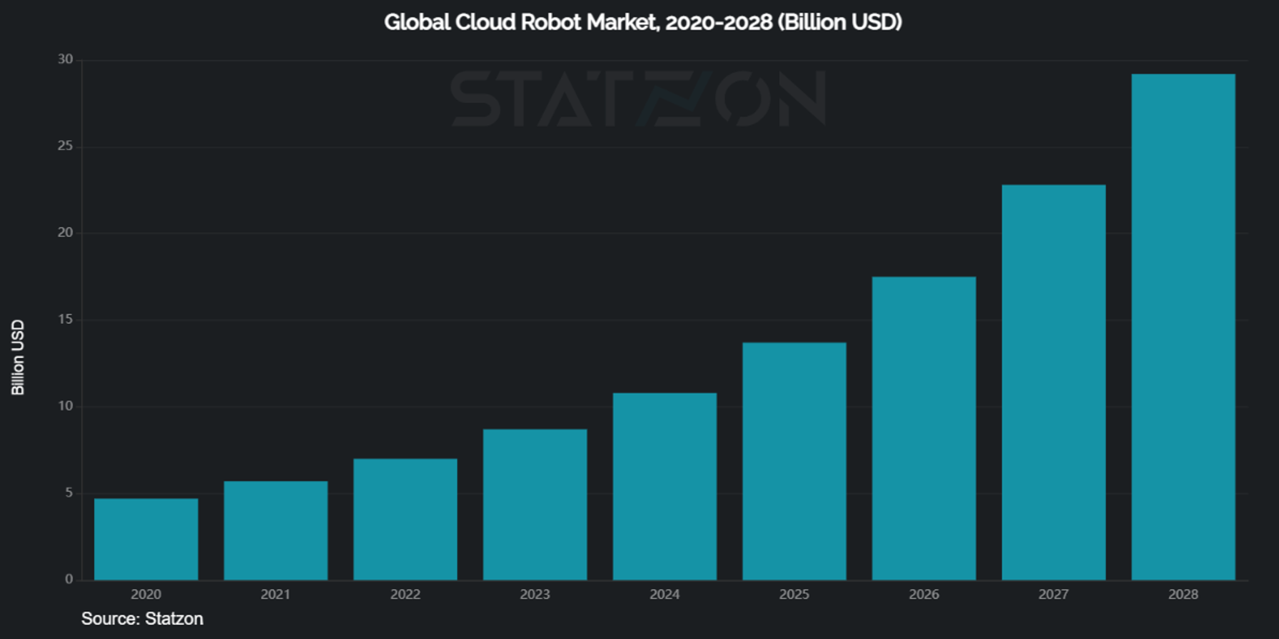 LAHTI, FINLAND, March 22, 2021 /EINPresswire.com/ -- The global market for cloud robotics estimated at 4.7 billion USD in the year 2020, is projected to reach the size of 29.2 billion USD by 2028, growing at a CAGR of 25.8% over the analysis period 2020-2028.