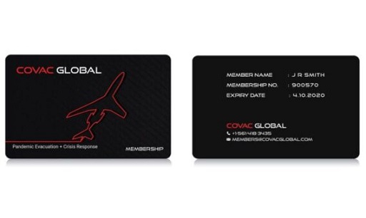 COVAC GLOBAL currently has thousands of members and a 100% success rate for evacuations. No member has ever been denied an evacuation, and dozens of evacuations have occurred over the past year. COVAC GLOBAL is a unique member program for individuals looking for a dedicated, private transport facility back to their home city should they contract COVID-19 while away from home in the US or out of the country. The product is aimed at those who are frequent travelers and are looking to resume their normal transit activities having been unable to do so until now due to exclusions or limitations in their existing insurances. Most regular travel insurance policies, if they cover COVID-19 at all, only offer to evacuate a traveler to the nearest suitable medical facility. COVAC GLOBAL ensures full repatriation to the traveler's home city.