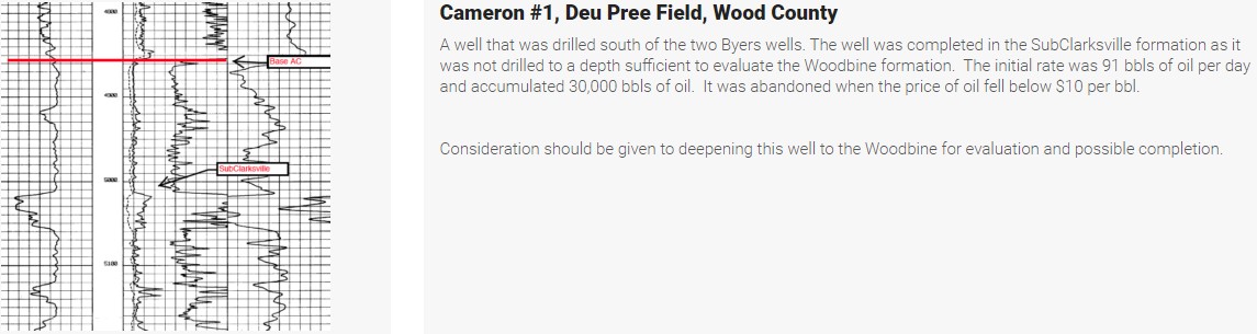 AGYP Well Project #1 is Byers Heirs #2 Deu Pree Field, in Wood County Texas. This well was originally completed in the Woodbine formation from perforations of 5,736' - 80' making 74 barrels per day of 16-degree gravity "heavy" oil and accumulating 78,000 barrels of oil. When abandoned in 1997 the well was capable of making 60 barrels of oil per day but at the time there was no market for heavy oil and the price per barrel was discounted considerably due to the low gravity. Today there is a large demand for this type of crude oil, and it can receive a significant bonus over the posted price of West Texas Intermediate. The produced oil will be blended with condensate to raise the gravity of the product and lower the gravity of the condensate. This will alleviate any pricing discounts applied due to lower gravity of the oil and the higher gravity of the condensate.