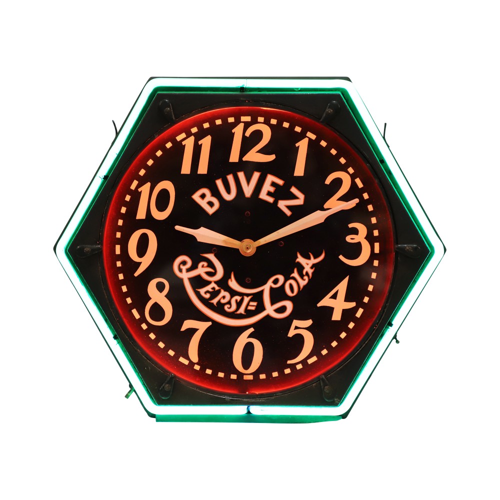 Clocks from Canada included a Pequegnat “Barley Twist” variant hall clock from the 1920s housed in a quarter sawn oak case and featuring 8-day weight-driven time and strike movement ($4,720); and a 1930s Pepsi-Cola neon clock made exclusively for the French-Canadian market, with a hand-painted dial featuring Pepsi’s early “double-dot” logo and lighted dial ($4,425).