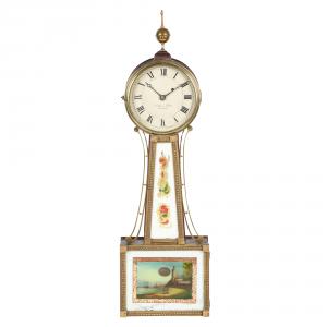 Nathan Hale Vermont banjo clock, made in America in 1840. The 8-day, time only clock had a movement similar to Willard, with tabs on the corners (CA$7,080).