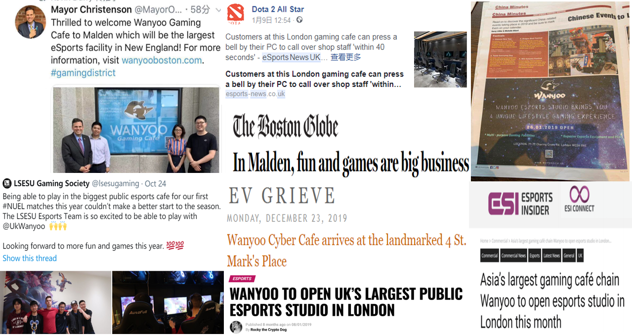 Through Wanyoo’s global partners and players, it continues to exert its international influence by actively cooperates with eSports teams, international and domestic tournaments and video game publishers. The two well-known esports teams IG and 4AM have been endorsing Wanyoo for years. Wanyoo also achieved partnership with PGI.S.2021. In 2019, Wanyoo Gaming Center became the exclusive partner of LOL NATIONAL NETBAR LEAGUE CHINA. Same year, Wanyoo held the first international Wanyoo eSports center league covered Wanyoo players from New York, London, Singapore. etc. Wanyoo and its stores also value local partnerships. In UK, Wanyoo sponsored the LOL tournament of CSSA UK 2019. In Canada, Wanyoo eSports center assisted local collage to establish esports team.