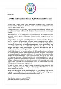 On the “HWPL Statement on Human Rights Crisis in Myanmar”, the organization announced that global actors of the globe with one voice are encouraged to display their support for conflict resolution through the channel of dialogue between the military and civil society actors.