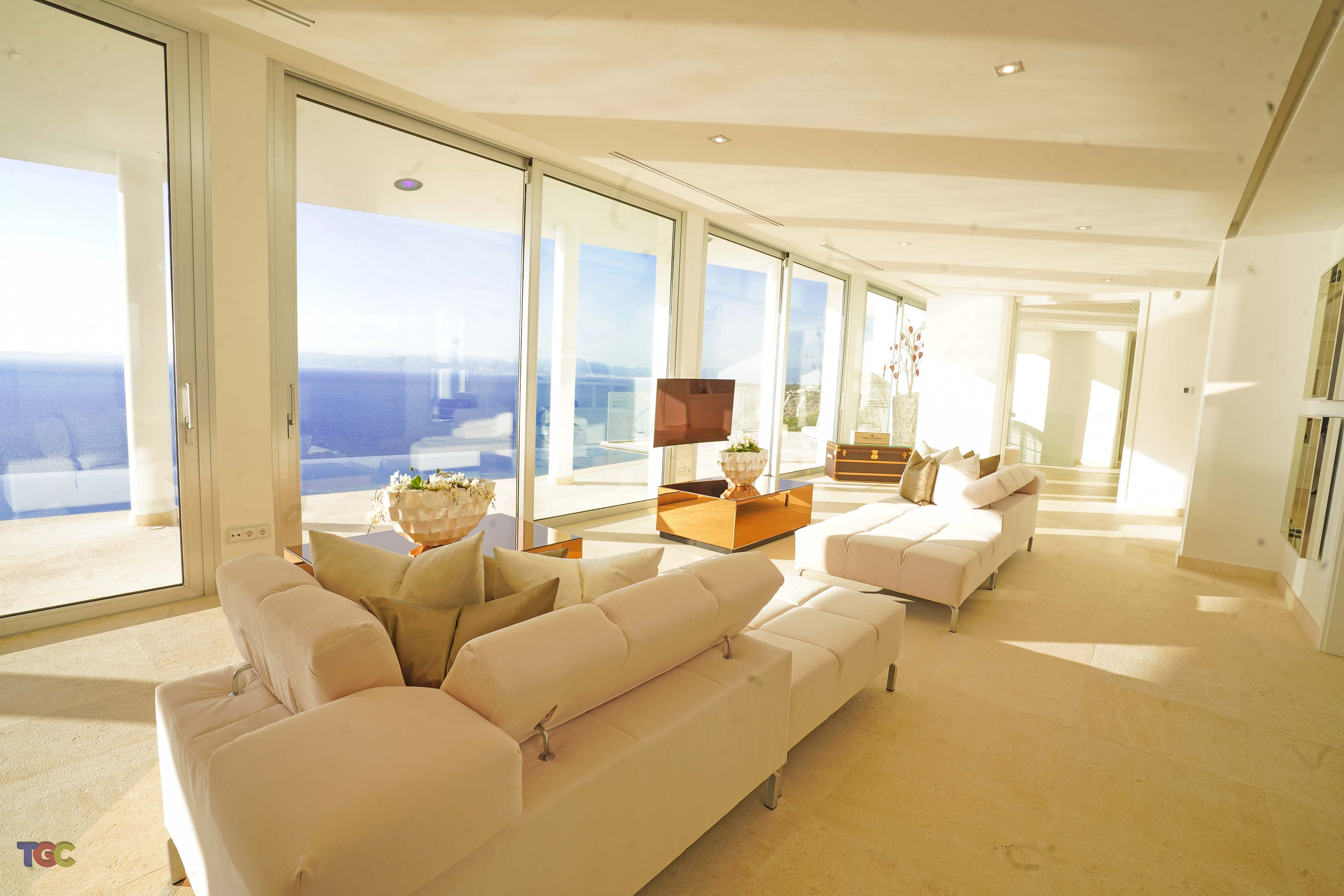 The exquisite views of the Mediterranean Sea are perfectly complemented in this contemporary oceanfront villa in peaceful Sa Torre.
