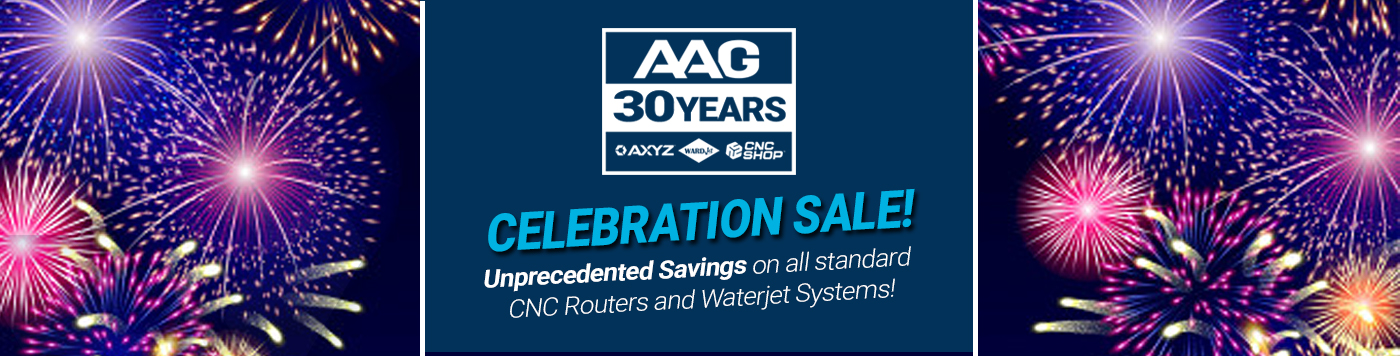 This year marks the 30th Anniversary of AAG Tailored Cutting Solutions. To celebrate, AAG will offer unprecedented sales on AXYZ routers, WARDJet waterjets, and CNC parts – a first-time event in the company’s history.