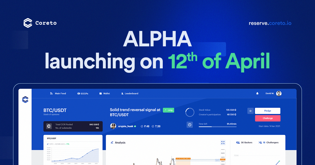 Starting April 12th, those who have reserved their Alpha release spot on Coreto’s whitelisting will be able to test the main feature of their platform - Staking of Opinion Pool - which is mainly addressed to the cryptocurrency trading area.
