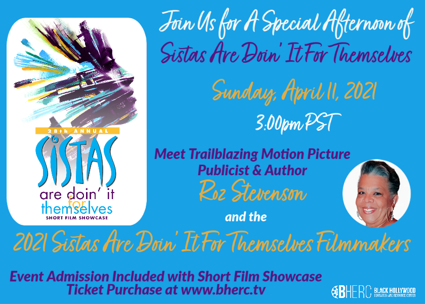 LOS ANGELES, CA, USA, April 9, 2021 /EINPresswire.com/ -- The Black Hollywood Education and Resource Center (BHERC) announced today the addition of trailblazing and legendary publicist Roz Stevenson to the panel discussion at the closing of the BHERC 28th annual “Sistas Are Doin’ It For Themselves” Short Film Showcase, Sunday, April 11, 2021, 3:00 PM to 4:30 PM (PDT). This is the second year that the popular film showcase has streamed online on BHERC.TV due to the COVID – 19 pandemic, and continues to stream through midnight April 11, 2021. The panel is included in the admission price of the showcase register here at www.BHERC.TV.