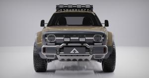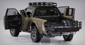 The multipurpose electric utility truck was unveiled in a deep sand tone named “Twentynine Palms” inspired by stark desert landscape, rock formations, and trees of Joshua Tree National Park in Twentynine Palms, California.