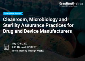 SAN JOSE, CA, UNITED STATES, April 15, 2021 /EINPresswire.com/ -- ComplianceOnline, the world’s leading provider of regulatory compliance training, is holding a 2-day virtual seminar entitled ‘Cleanroom, Microbiology and Sterility Assurance Practices for Drug and Device Manufacturers’ on May 10-11, 2021 (9:00 AM to 4:00 PM EDT). The seminar will be presented by Charity Ogunsanya, CEO and Founder, Pharmabiodevice Consulting LLC.