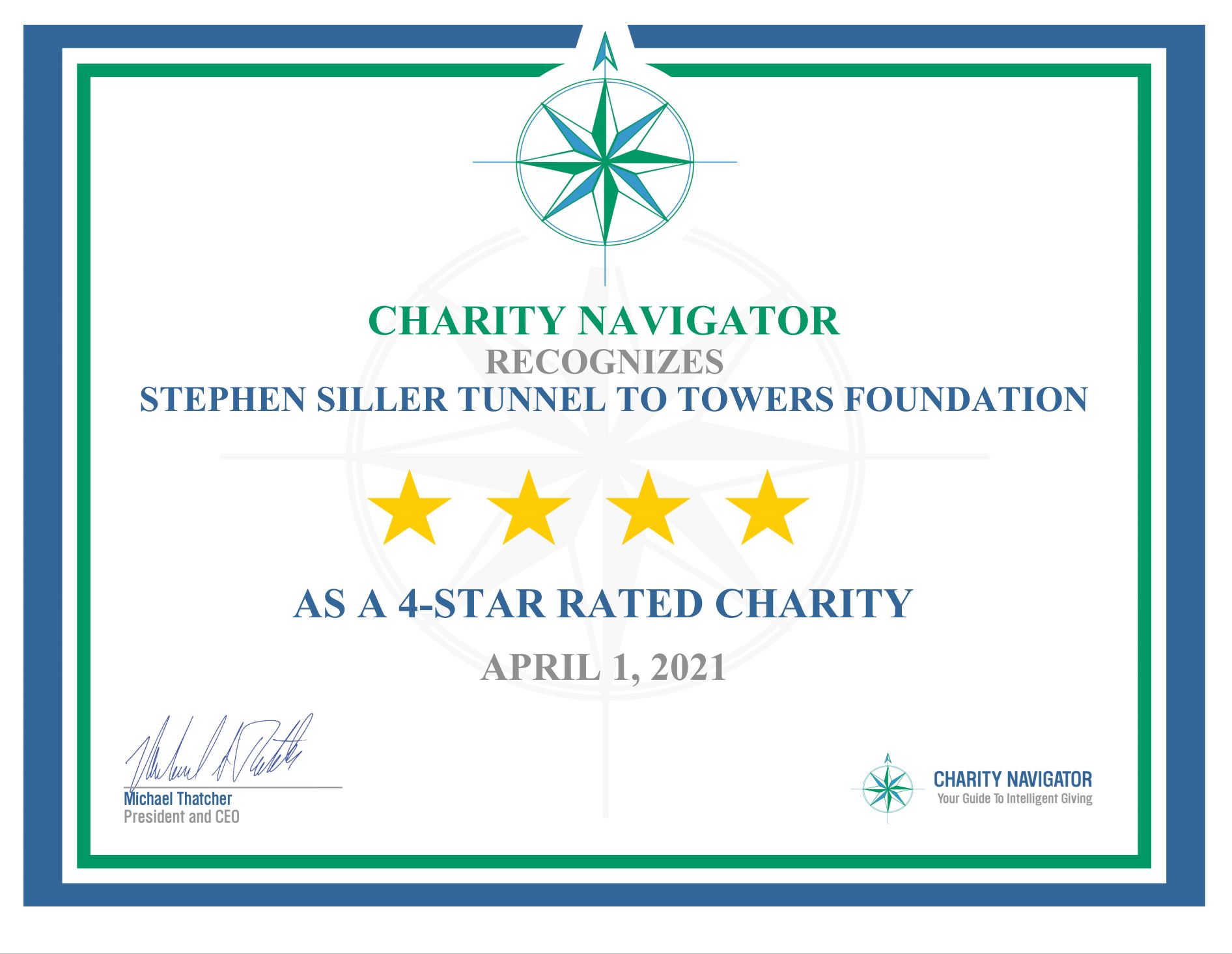 Tunnel to Towers Earns Coveted 4-Star Rating from Charity Navigator for 7th Consecutive Year