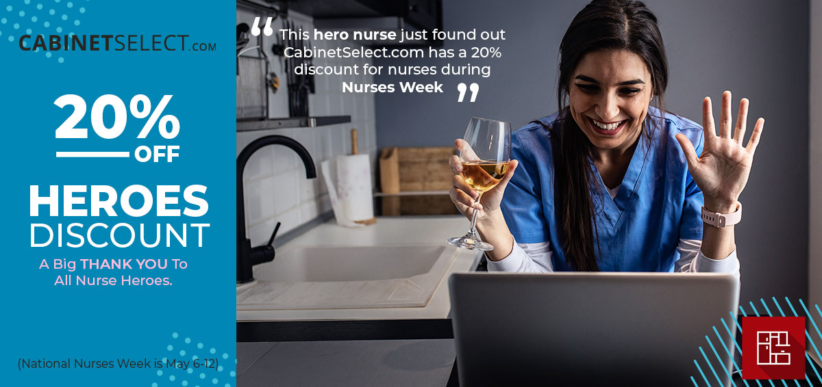 CabinetSelect.com, provider of ready-to-assemble kitchen cabinets will celebrate National Nurses Week by offering a 20% Heroes Discount on orders over $3,500.