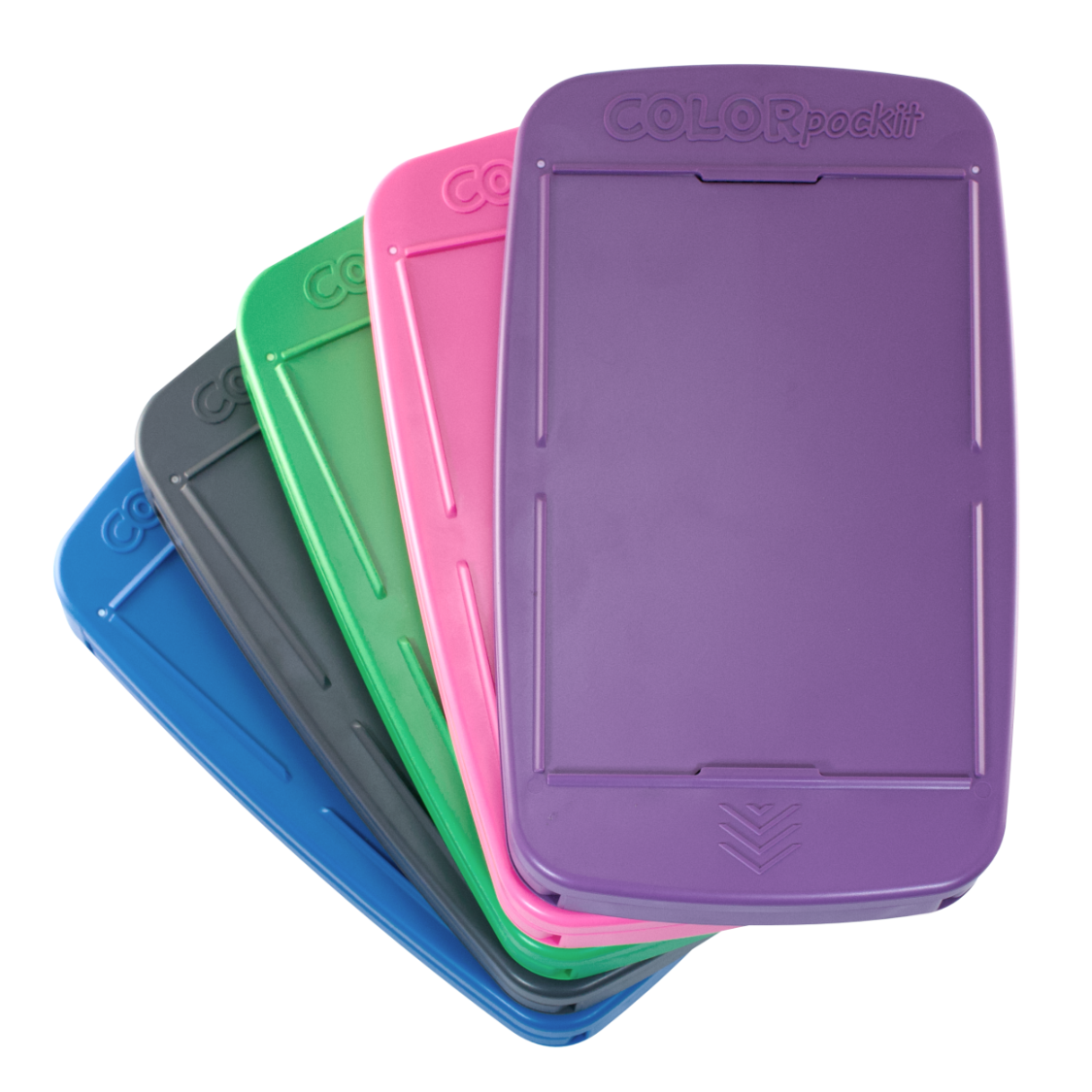 COLORpockit™, designed and manufactured in the U.S.A., makes portable coloring kits for both children and adults, providing a creative outlet and relaxing activity for both you and your kids. COLORpockit™ kits include a food-safe plastic case that acts as a lap desk, 4x6 coloring postcards, custom double-sided colored pencils (24 colors), and a no-mess, built-in sharpener — all of which fits nicely into a purse, backpack, or glovebox.