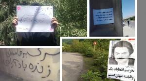 PARIS, FRANCE, May 10, 2021 /EINPresswire.com/ -- During the first week of May 2021, Mujahedin-e Khalq (MEK/PMOI) supporters and the Resistance Units called for a boycott of the mullahs' sham presidential election by installing banners and placards, writing graffiti, and distributing leaflets throughout Iran, — NCRI