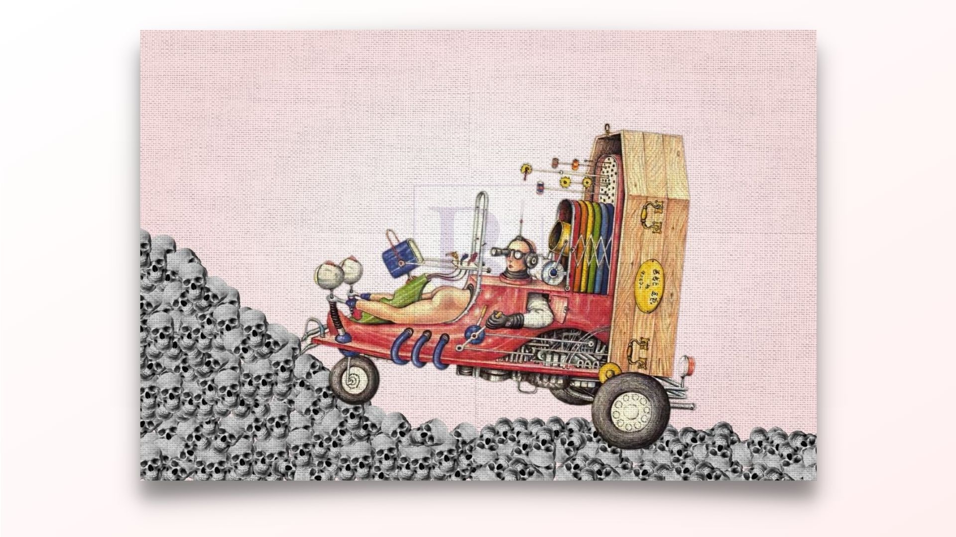 The collection draws inspiration from one of the most mysterious books ever made – the Codex Seraphinianus. It is a guide to an unknown world, 400 pages of descriptions and explanations for an imaginary existence, all in its own uniquely unreadable alphabet, complete with hundreds of drawings. Cleo Black, the pseudonym used for the name of the artist, was quite intrigued with the book and what started as a curiosity ended up being an obsession wherein he hallucinated and imagined these beings in real life before succumbing to a severe mental illness. The weird imagery of these digital artworks will make you question “Do I know anything that’s happening in this art?” Weird creatures manufacturing humans, a different evolution taking place on another planet, a unicorn with wheels, and a man driving his car using his legs. As Cleo Black would put it in his last moments of sanity, “...whosoever shall possess this collection shall gain mastery over eternity.” If you think that’s bonkers, wait till you see the artworks. You can experience these artworks on the collection website.