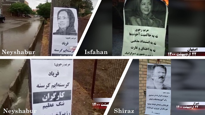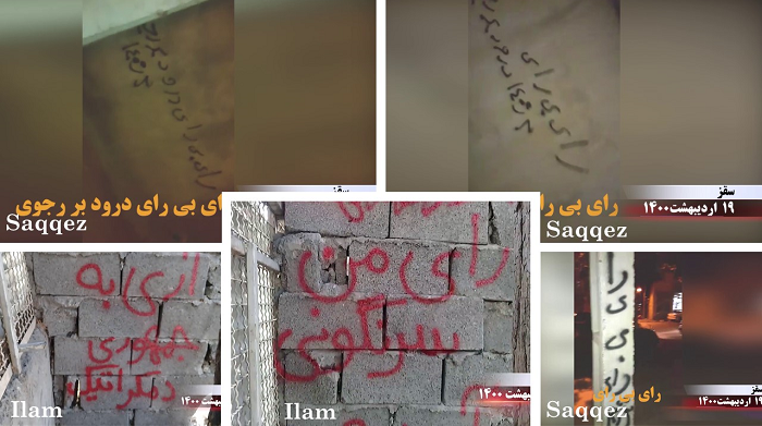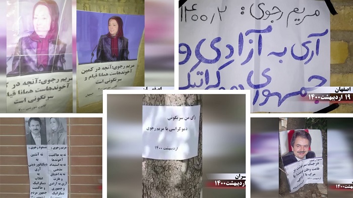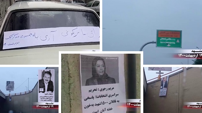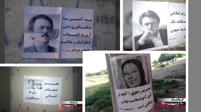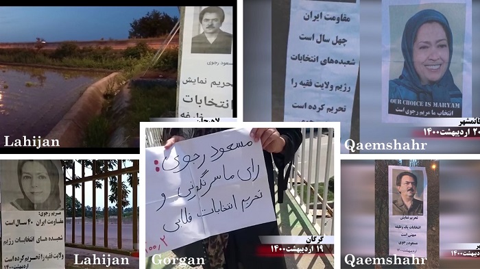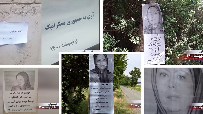 Among the slogans were: "Maryam Rajavi: yes to a democratically-elected republic," "Maryam Rajavi: nationwide boycott of the election, a response to the murderers of 1,500 martyrs of November 2019 uprising,” "Maryam Rajavi: No to the rule of the mullahs, no to religious tyranny, no to oppression and plunder, yes to a democratically-elected republic," “Maryam Rajavi: A popular uprising is awaiting the mullahs, and will lead to their overthrow," "Massoud Rajavi: Boycotting the sham election is a patriotic duty," "Massoud Rajavi: Iran’s destiny to be determined not by the mullahs’ ballot box, but by the uprising of Iran’s valiant children,” "My vote is regime change, yes to a democratically-elected republic," "We will not vote, hail to Rajavi,” "Massoud Rajavi: Our vote is regime change and the boycott of the sham election," “Democracy, freedom, with Maryam Rajavi,"