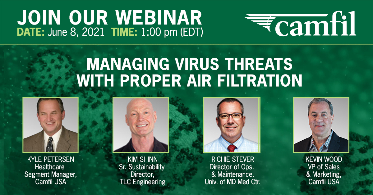Industry experts in air filtration and engineering will be speaking at a free webinar on June 8 at 1 PM EDT (12PM CDT, 11PM MDT, 10AM PDT). The webinar, titled “Managing Virus Threats with Proper Air Filtration,” will include a roundtable of experts in the industry, who will share their first hand expertise on how to mitigate virus risks.