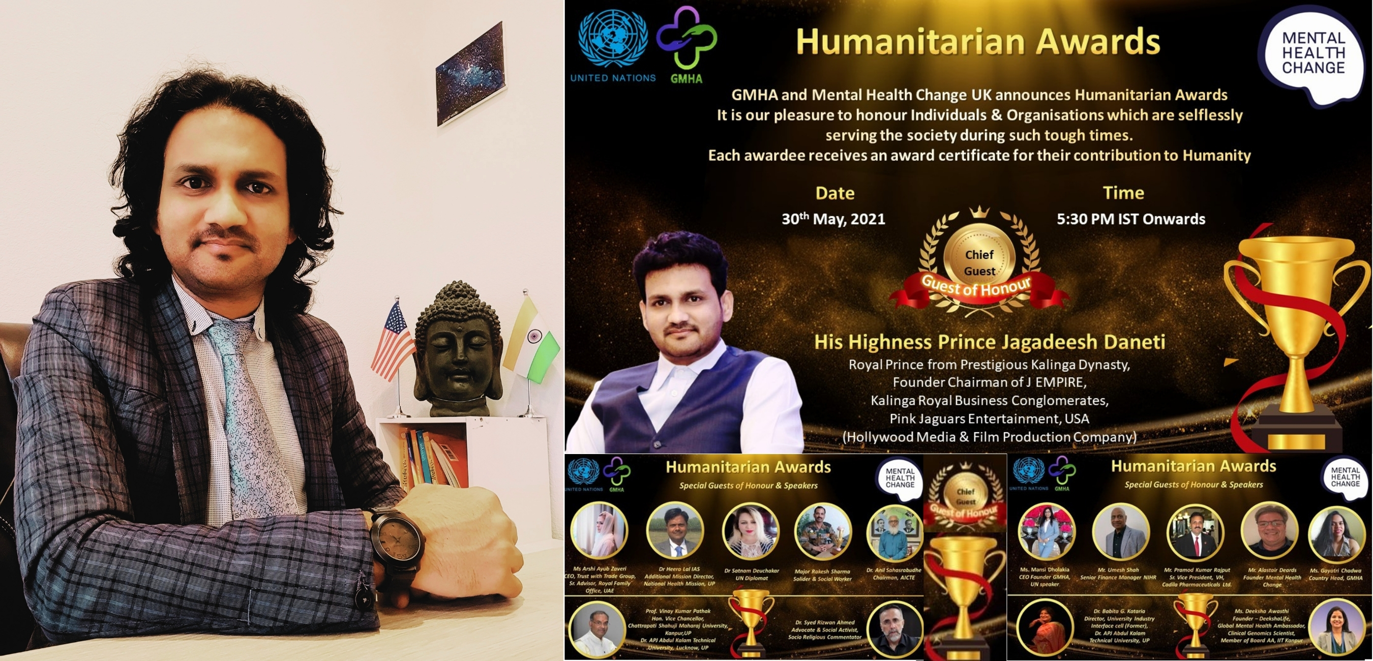 LOS ANGELES, CA, UNITED STATES, May 31, 2021 /EINPresswire.com/ -- “A day before, I came across a video of a gang rape where a young lady was brutally raped by 6 youngsters in presence of her boyfriend. Do we call it a healthy society? Do we solely react, if the same happens to our sister, mother, wife or one within the family? When we have time for everything, why don’t we prioritize to respect and protect women? …” – Prince JD expressed his intense dissatisfaction in the global ‘Humanitarian Awards’ virtual event organized by Global Mental Health Association (GMHA), USA-INDIA and Mental Health Change, UK.