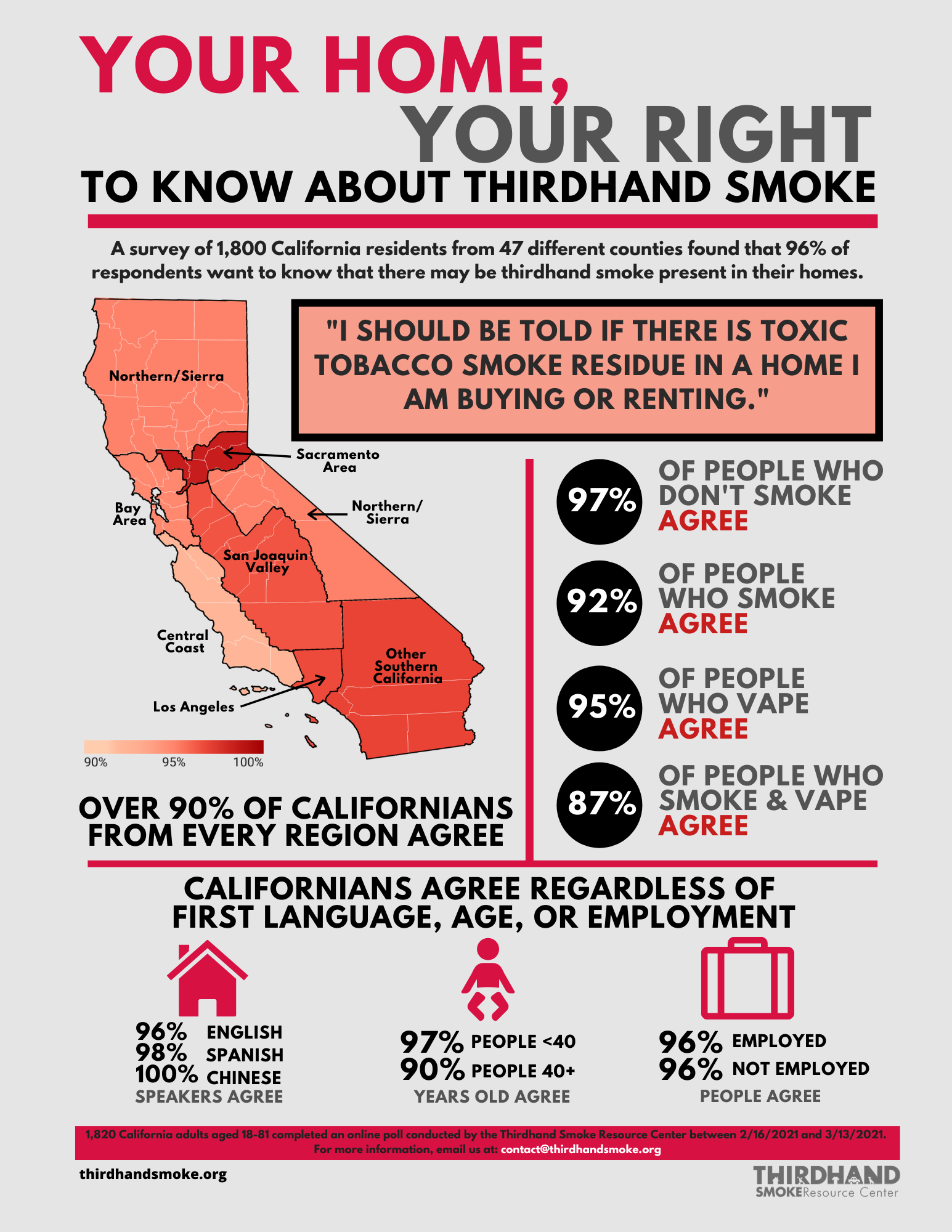 96% of California adults say they want to know if the home they are about to purchase or rent contains toxic tobacco residue known as thirdhand smoke.