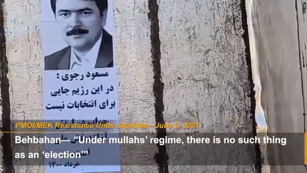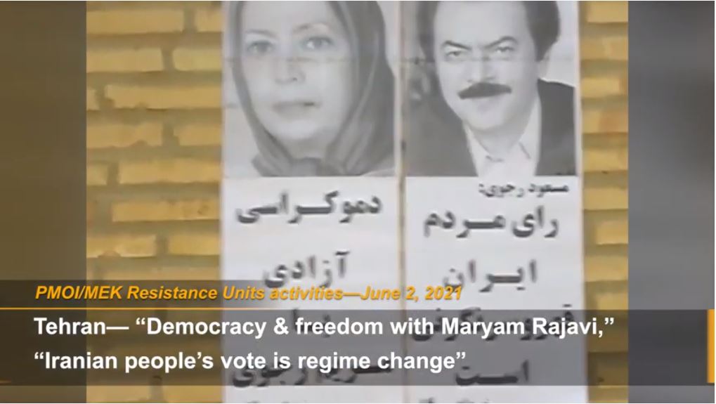 In major cities such as Tehran, Isfahan, and Mashhad, the Resistance Units installed, posters of the Iranian Resistance leader Massoud Rajavi and the President-elect of the National Council of Resistance of Iran (NCRI) Maryam Rajavi with the slogans “A strong no to the religious dictatorship, yes to a democratic republic,” “Down with Khamenei, hail to Rajavi” and “The Iranian people’s vote is regime change.”