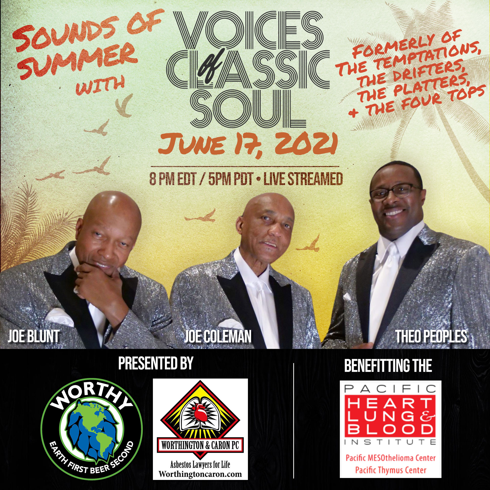 The Voices of Classic Soul “Sounds of Summer” Virtual Concert takes place on Thursday, June 17 at 5 PM PDT/8 PM EDT. Tickets are available at voicesofclassicsoul.com/sounds-of-summer/. The concert is available to watch for seven days after the performance for all ticket holders.