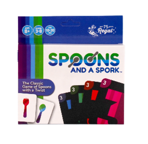 Spoons and a Spork takes the fun, classic game of spoons but give it a “sharp” twist. Collect four of a kind and race to scoop up the spoons… but watch out for that spork!