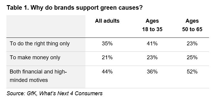 New GfK survey shows 18-to-35 age group is more likely to say “green” brands have altruistic motives