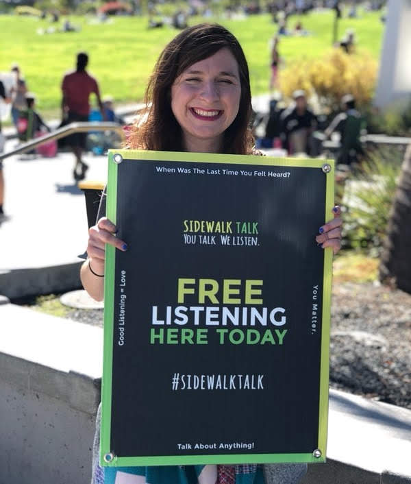 Sidewalk Talk has volunteer chapters in over fifty cities in fourteen countries, dedicated to hosting street listening events that bring their communities closer together. Volunteers at Sidewalk Talk are highly trained individuals whose skills are tailored to crisis intervention and heart-centered listening; rooted in empathy and inclusion.
