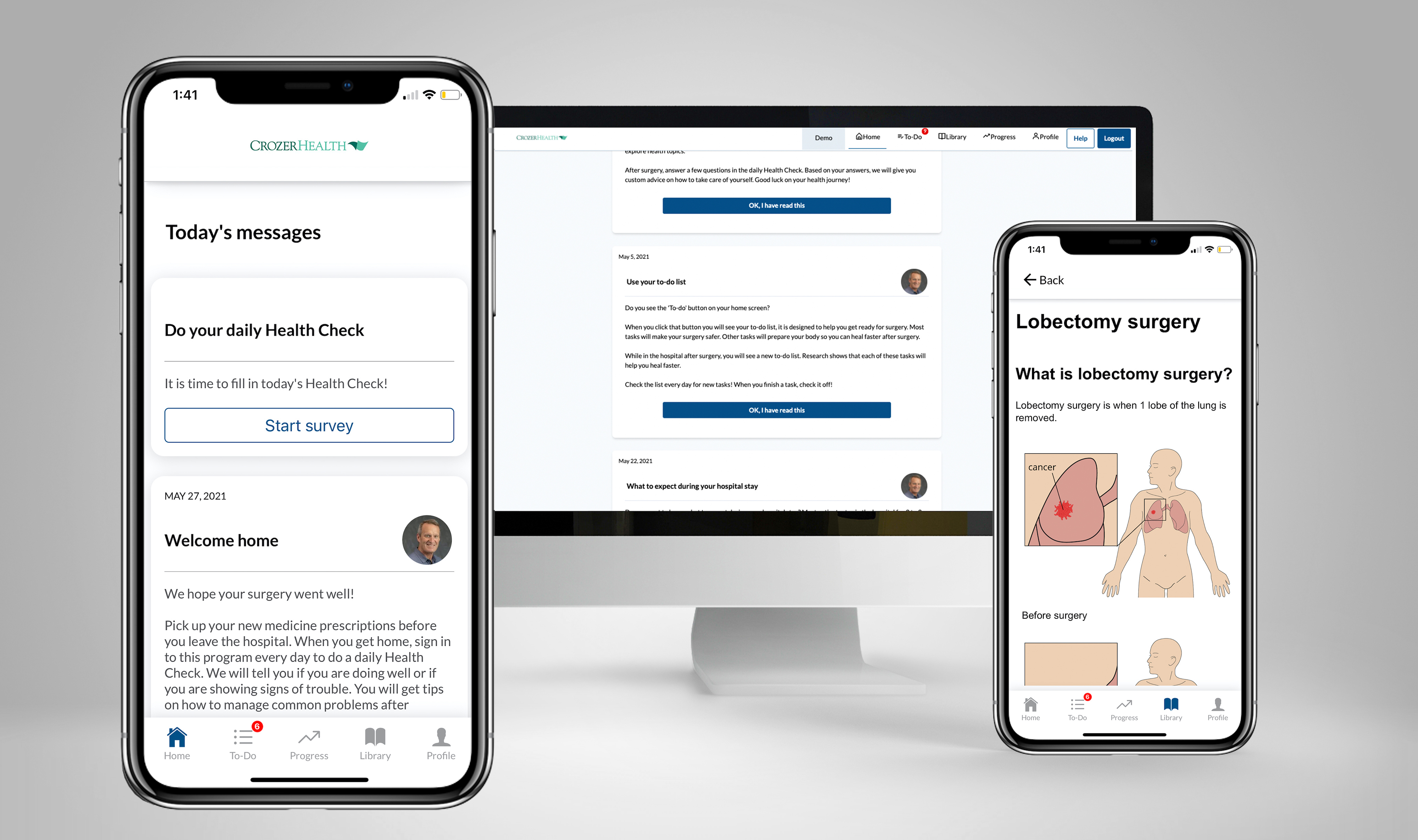 With SeamlessMD, patients undergoing thoracic procedures at Crozer Health’s Delaware County Memorial Hospital are guided before and after their procedure with personalized education, progress-tracking, and post-op symptom monitoring using their own devices (e.g. smartphone, tablet, computer). Upon discharge from the hospital, patients using SeamlessMD can self-report data such as compliance, pain scores, symptoms, and share photos of their surgical wounds through the platform remotely. The Crozer Health care team can use this data to provide patients with personalized care recommendations and can intervene faster, remotely, if necessary.