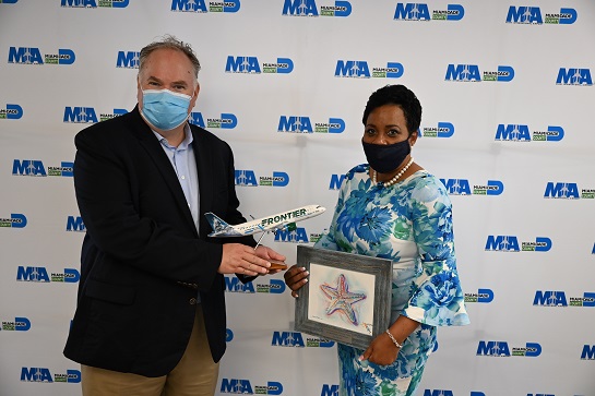 "Frontier Airlines' multiple flights per week provide a breath of fresh air to our tourism economy as this air link connects our destination to the hub of the Southeastern USA, including Florida, a market from which we annually attract a significant share of our visitors," said Minister D'Aguilar.