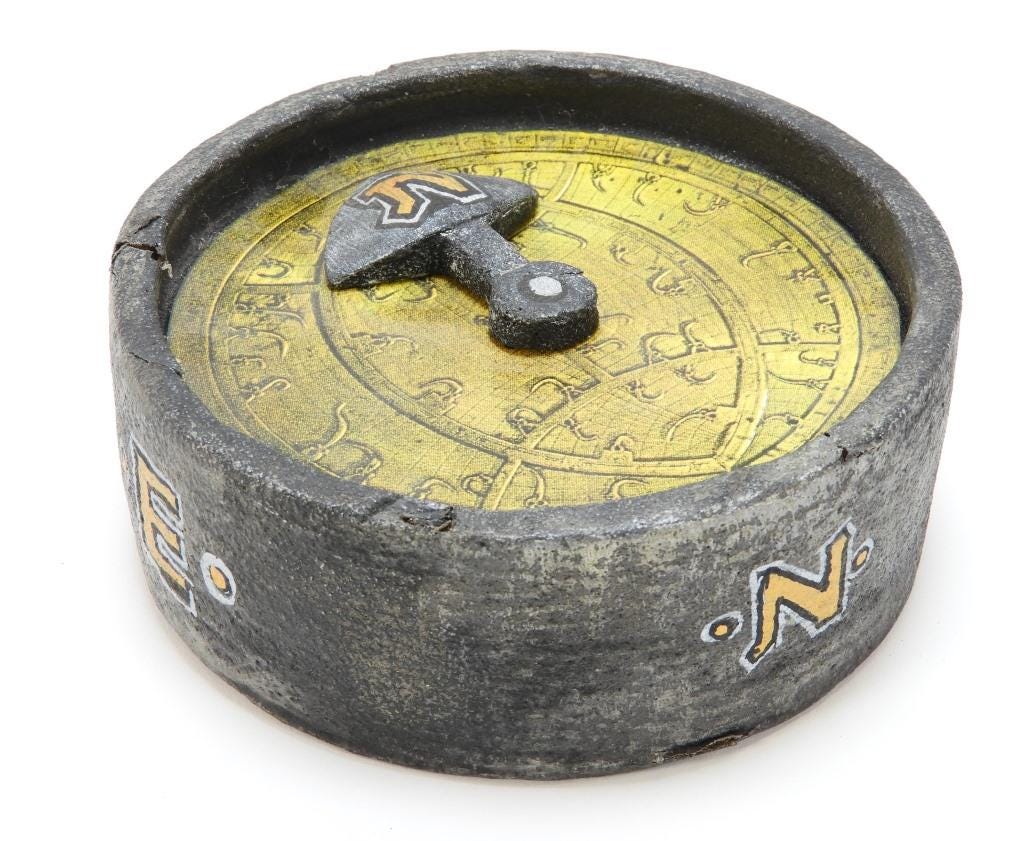 Also from the Eric Baker collection, The Upside-Down Compass of Henry Hudson, used on-screen in Nickelodeon’s Legends of the Hidden Temple TV game show, an artifact that was a point of focus in the show’s 90th episode in 1995, is expected to change hands for $300-$500. The compass is a little more than 6 inches in diameter and just shy of 2 ½ inches in height.