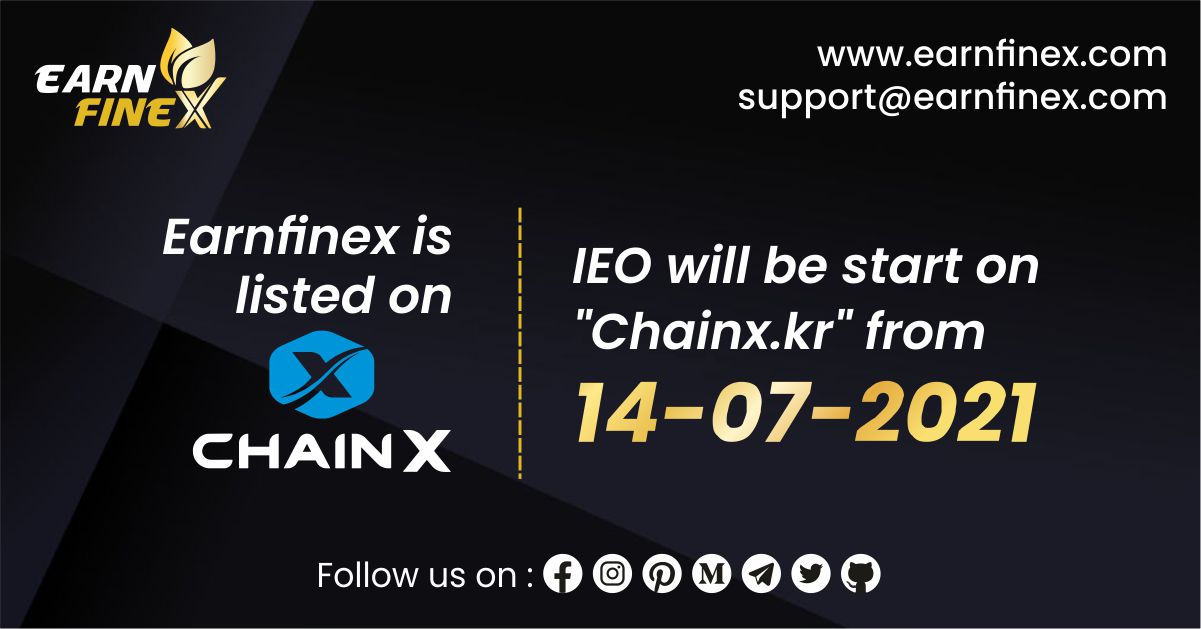 ICO Pantera is a strategic partner of Earnfinex and this alliance will be work togather for south-asian markets, Chainx is 1st official exchange where IEO of Earnfinex will be start from 14/07/2021 to 27/07/2021. Anyone can participate in IEO and purchase EFX token from Chainx.kr