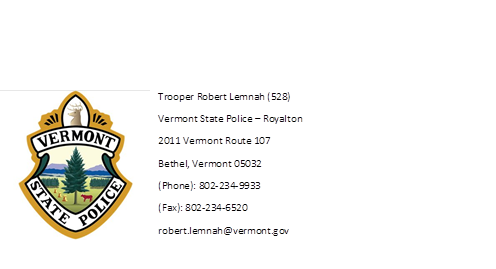 Troopers from the Royalton Barracks responded to Camp Brook Rd in Bethel for the