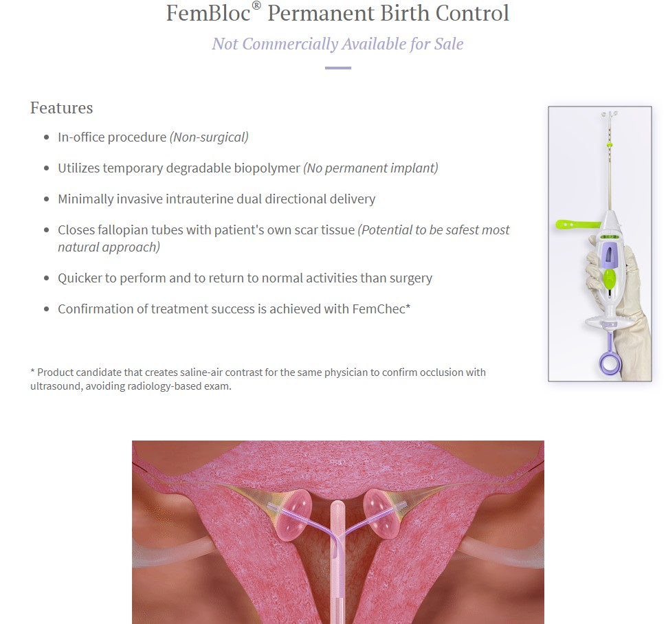 FEMY will use the proceeds of its recent $34.45 Million IPO to fund the completion of enrollment in the stage 2 clinical trial and commencement of the stage 3 clinical trial for the company’s Permanent Birth Control FemBloc system and for the initiation and completion of the pivotal trial for its Fertility FemaSeed system. FEMY also has other fertility products in development for Occlusion Confirmation, Localized Directional Insemination, Infertility Diagnosis and Endocervical Tissue Sampler Biopsy. The FEMY IPO proceeds will further be used to fund product development and research and development activities, to hire additional personnel, and for working capital and general corporate purposes.