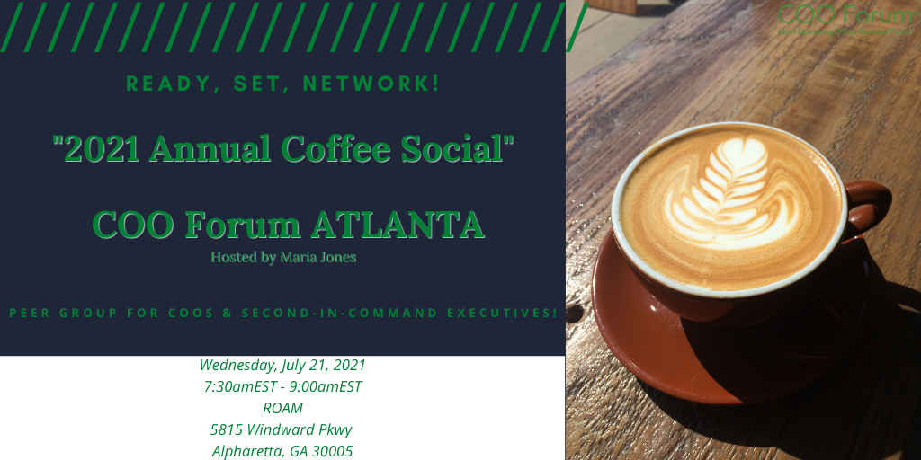 ATLANTA, GA, UNITED STATES, July 10, 2021 /EINPresswire.com/ -- Despite the pandemic downturn, Georgia businesses are bouncing back. According to Georgia’s Department of Economic Development, businesses are thriving with 24,000 new jobs and over 8 billion dollars in new investment. The Peach State is ripe for business activity, and one organization positions itself to help executives pivot for the next season of growth. The Chief Operating Officer Business Forum, a peer to peer professional development organization, is proud to serve Operations leaders in the Atlanta area.