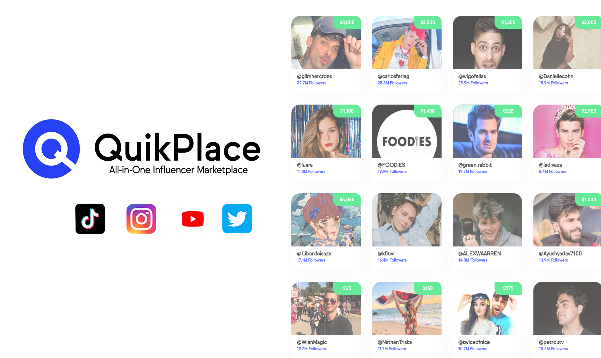 LOS ANGELES, CA, UNITED STATES, July 13, 2021 /EINPresswire.com/ -- All-in-one creator marketplace, QuikPlace reaches milestone of 6,500+ creators with a combined reach of over 4 billion total followers, making them the largest public influencer marketplace to date. Built to streamline influencer marketing through seamlessly connecting creators with brands and record labels for paid promotions across social media. The platform celebrated this achievement with the release of several campaign tools to get yet another leap ahead of those within their space.— Alex Boro, Co-Founder