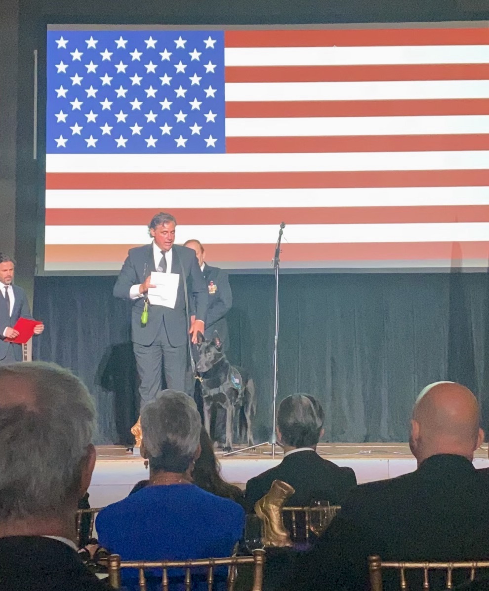As he accepted the award on behalf of Guardian Angels Cadigan said, “This week, I attended the memorial service and funeral of two friends who succumbed to their invisible injuries. It is unknown if a medical service dog could have helped them. Both had met my dog and were considering the application process at the time of their deaths. Should you have the ability to make a donation to help train and pair an amazing dog [through Guardian Angels Medical Service Dogs] you’ll have a direct impact on helping a veteran.”