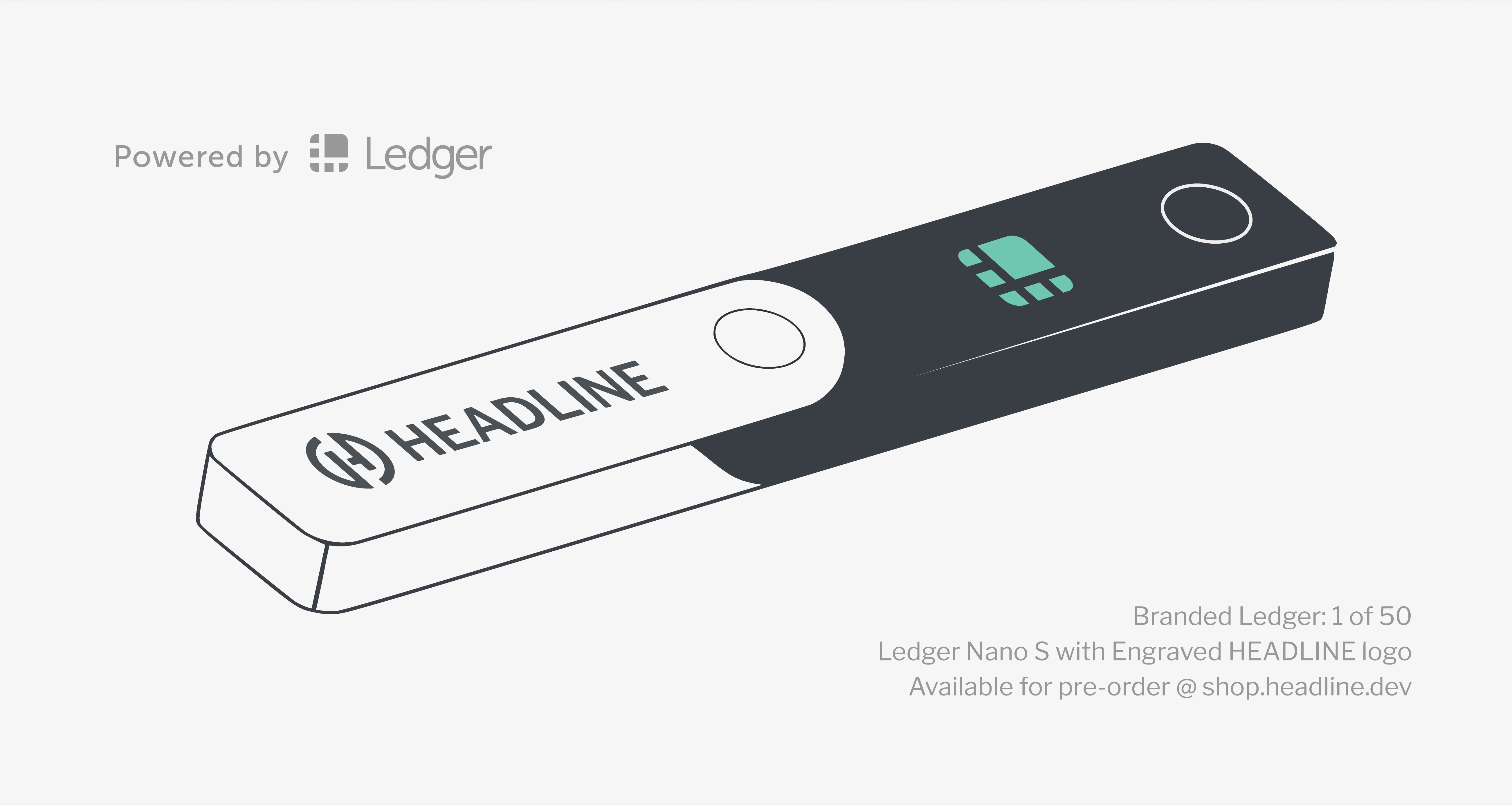 HEADLINE is releasing a limited-edition Branded Nano S hardware wallet to commemorate the Ledger partnership and Ledger Live integration. These Branded hardware wallets will sport the first iteration of HEADLINE’s unified design system, featuring an updated logo, typeface, and color scheme. The 50-unit run of HEADLINE-Branded Nano S wallets is now available for pre-order.
