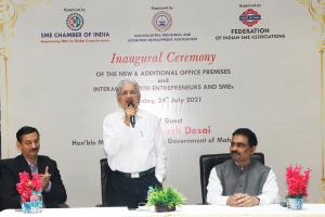 MUMBAI, MAHARASHTRA, INDIA, July 24, 2021 /EINPresswire.com/ -- The new office of SME Chamber of India Maharashtra Industrial & Economic Development Association Federation of India SME Associations was inaugurated today by Hon'ble Minister of Industrial Development of Maharashtra at Andheri, Mumbai. Hon'ble Minister of Industrial Development of Maharashtra Shri. Subhash Desai was present as the chief guest. Many entrepreneurs and SMEs were present at the event. Honorable President of SME Chamber of India Shri. Chandrakant Salunkhe interacted with the entrepreneurs and SMEs present at the event.SME Chamber of India a premier national Chamber has been working for the development of SMEs from manufacturing, service sectors, and allied industrial sectors for 28 years. The mission of the Chamber is to integrate SMEs and stakeholders to accomplish the objectives of the Chamber as well as strengthening SMEs to achieve the targeted economic growth of India. The Chamber has been at the forefront for policy implementation and policy change and supporting SMEs to avail opportunities in the era of Make-In-India.