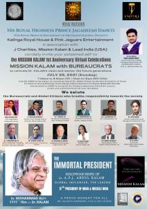 The Kalinga Royal House and HRH Prince JD honored Dr. Hari Eppanapally, Chairman of Mission Kalam, USA with the title of "Dr. Hari Kalam" towards his selfless contribution in the field of sustainability development which remained a dream of Dr. APJ Abdul Kalam till his last breath. The awarded title has been unanimously supported by the full house of members including the Indian Bureaucrats at the MISSION KALAM Virtual Convention. Dr. Hari gladly accepted the title and mentioned his deep gratitude to the Kalinga Royal House and HRH Prince JD. As an integral member of J Empire, he applauded His Royal Highness Prince Jagadeesh Daneti and the team of Pink Jaguars Entertainment for construing the idea which is the brain child of HRH Prince JD and the team’s remarkable feat of hosting and interfacing with millions of admirers of Dr. Kalam worldwide.
