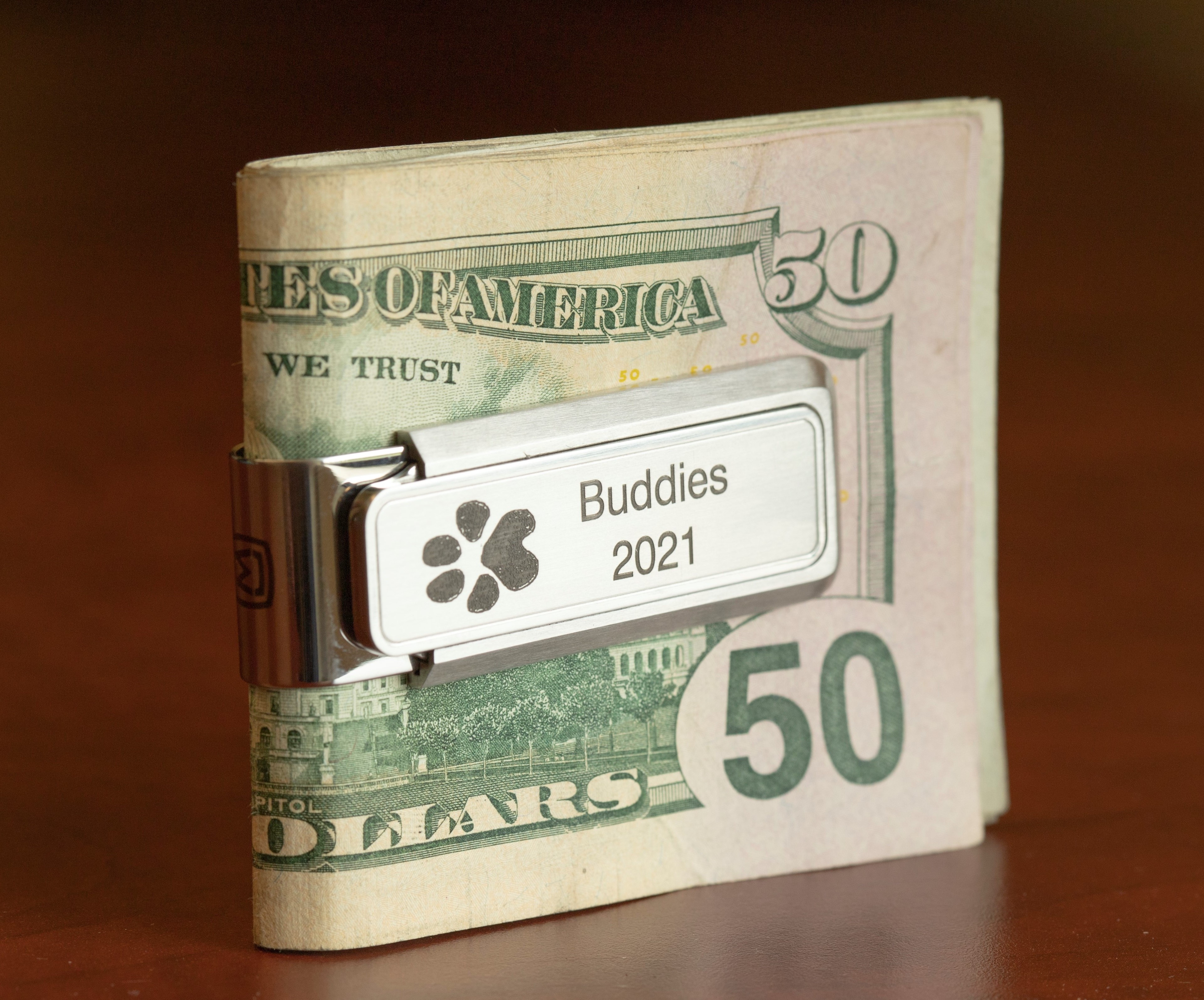 Our skilled artisans in Woodstock, IL, can now personalize a stylish and compact money clip to reinvent what a print keepsake can be. The money clips are made from American stainless steel and held together by a heat-treated spring that is guaranteed not to break or stretch out.