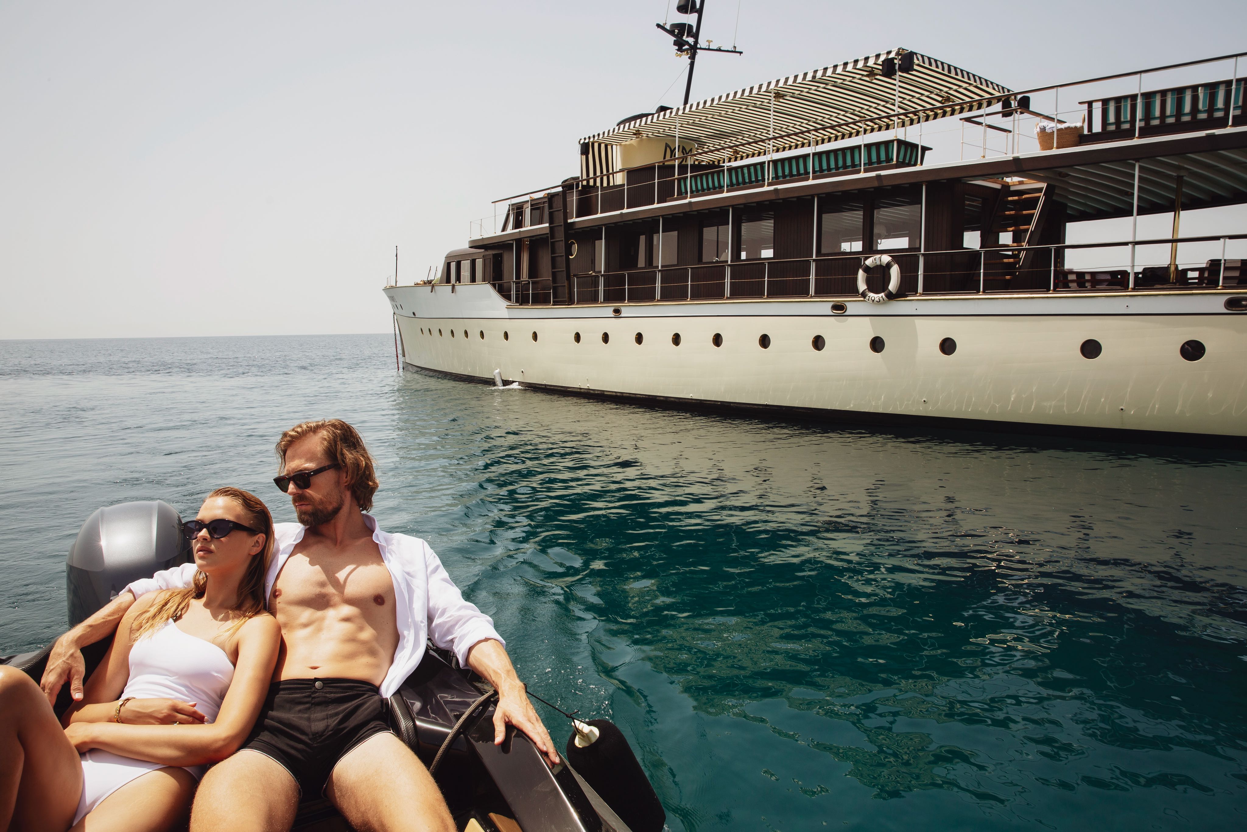 A structural redesign of the upper deck has dramatically extended external space to nearly 100 square meters, offering a substantial open-space sunbathing zone where guests can delight in panoramic vistas of the Aegean Sea. An up-to-date, fully-stocked bar of premium liquors and spirits adds a dash of Hollywood glamour. Although the vessel celebrates classic traditions, guests can groove to music from the latest sound system – a sort of sleek Spotify-by-the-sea.