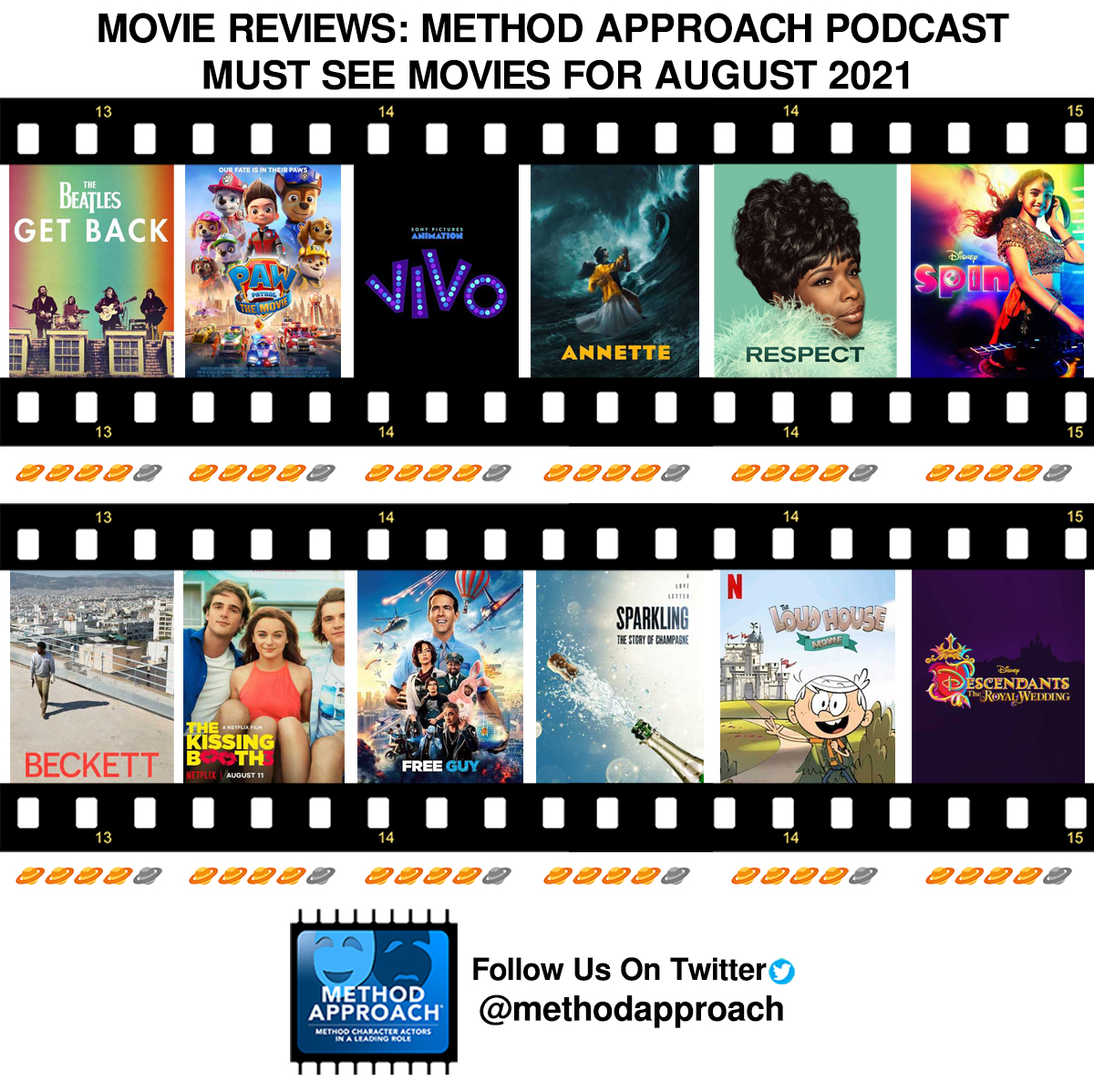 Method Approach Podcast's Most Notable Must See Movies for August 2021 are set forth in the Movie Review poster.