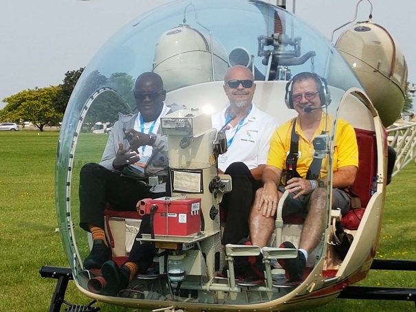 VIP Helicopter Tour – EAA Execs provided Bahamas Ministry of Tourism & Aviation executives with helicopter tour of EAA AirVenture Oshkosh grounds. L-R: Reginald Saunders, Permanent Secretary and Ellison “Tommy” Thompson, Deputy Director General. Photo courtesy BMOTA.
