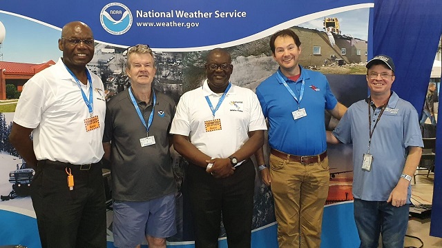 Networking - L-R: Nathan Butler, Bahamas Customs; Chris Doug, US Customs & Border; Reginald Saunders, PS, BMOTA; John Cook, US Customs & Border; Greg Rolle, Sr. Dir., Verticals Market, BMOTA; Deckery Johnson, BMOTA & Aram Bethell, BMOTA. Photo courtesy BMOTA