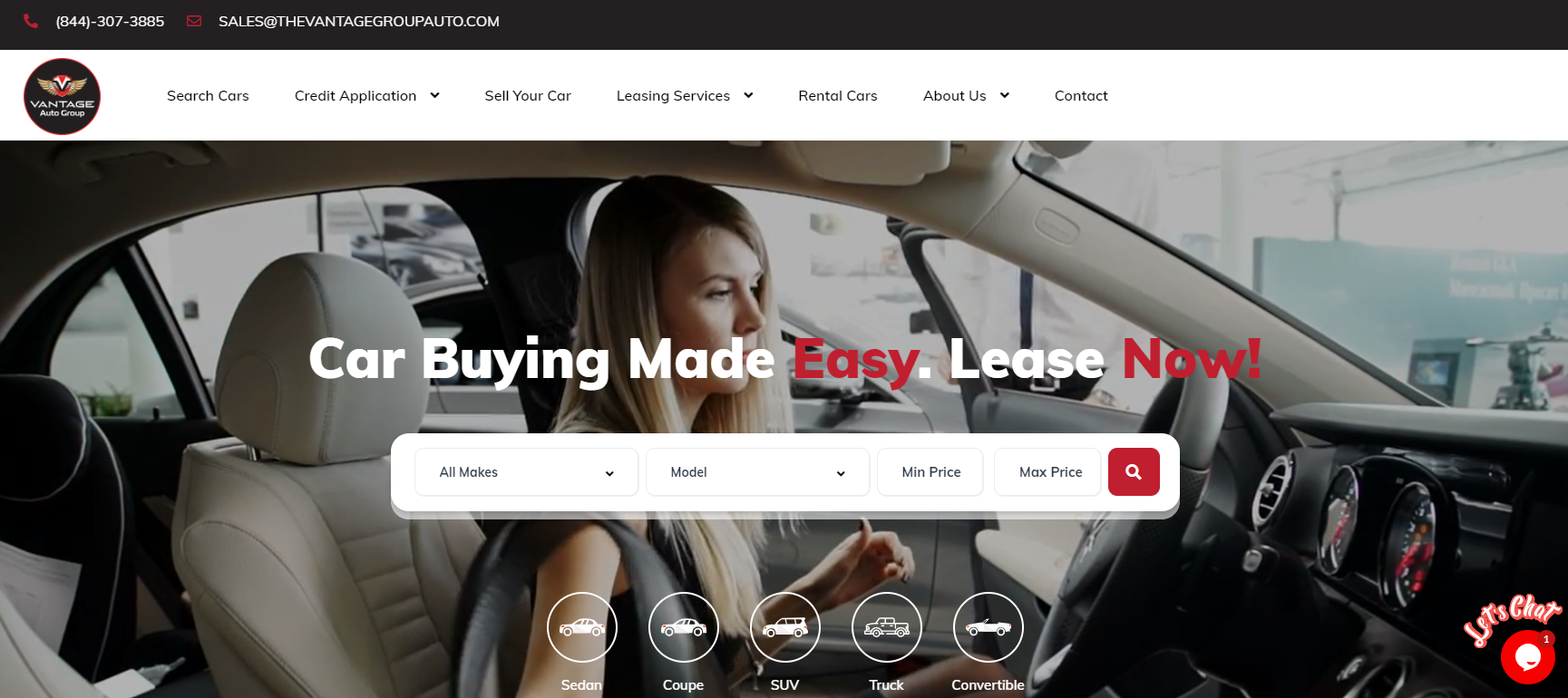 1. Visit https://thevantagegroupauto.com/search/ to browse and compare car lease pricing for all brands and models