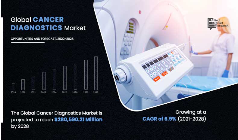 Global Cancer Diagnostics Market was pegged at $168.60 billion in 2020, and is estimated to reach $280.59 billion by 2028, growing at a CAGR of 6.9% from 2020 to 2028.