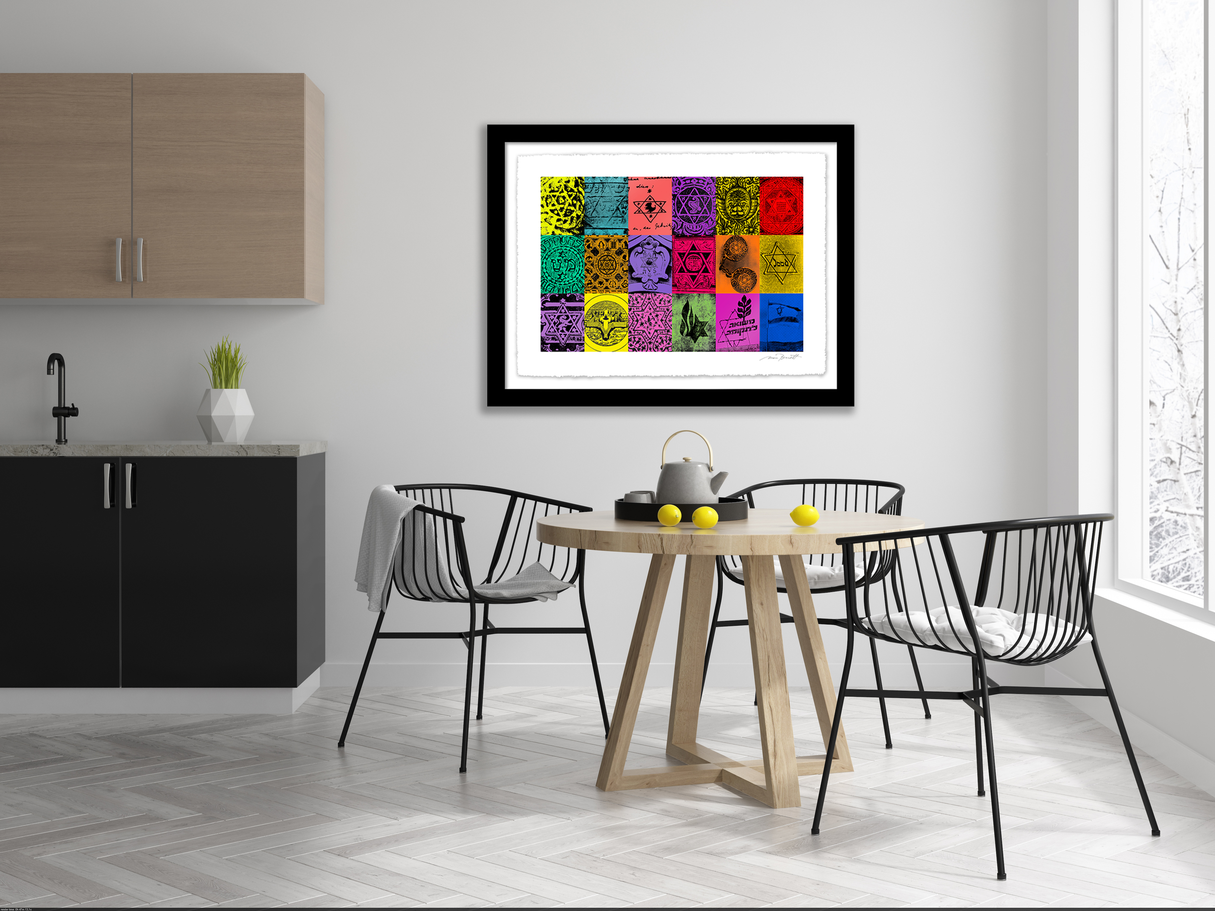 The History of the Star of David by Marc Bennett is an artwork that explores the long and complex history of the Star of David through 18 iterations of its use spanning centuries. The artwork allows viewers to bear witness to the depths and heights of the journey of the Jewish people. The History of the Star of David artwork both inspires and educates the public on the development of this symbol and the meanings it has come to represent as a result of its proliferation from remote antiquity up to the current State of Israel in the twenty-first century. It evokes a sense of survival and determination, as well as a celebration of Jewish culture, tradition and faith. StarofDavidArt.com